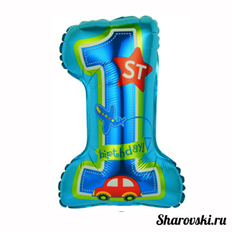 Фольгированный шар "Цифра 1 для мальчика", (16"/41 см)