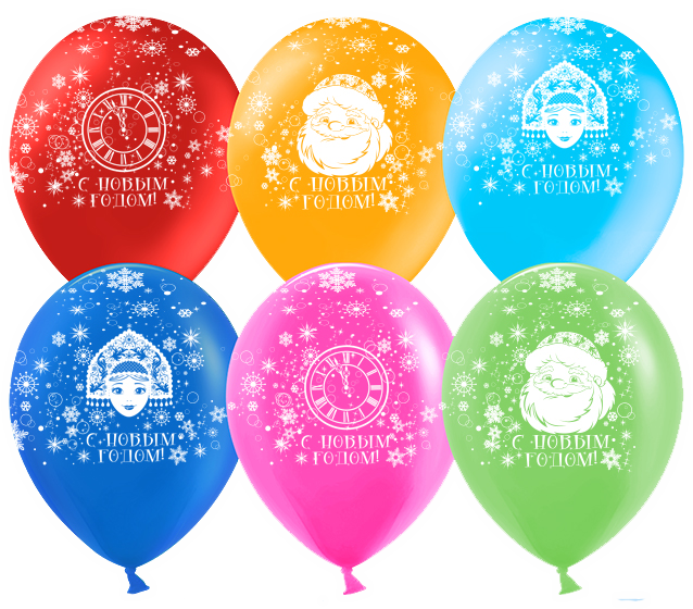 Шар c рис."С Новым Годом!", цв. Ассорти пастель 5 ст. (12"/30 см), с гелием