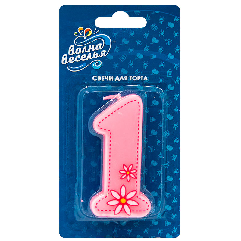 Свеча "Цифра 1", цв. Розовый с цветком (7,5 см)