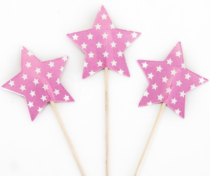 Пики для канапе "Звёзды, Белые точки", цв. Розовый, 12 шт